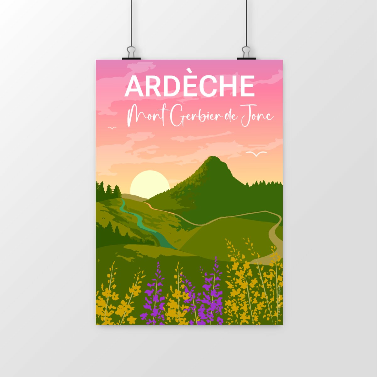 Poster Mont Gerbier de Jonc – Illustration Vintage / retro A4, A3, A2, A1 à partir de 14€90